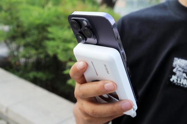 西圣PB当先支援15W的无线充电,支援iPhone12至iPhone15系列的磁吸快充,最高15W,虽然也支援安卓的无线充电手机!它的磁吸力还短长常强的,内置多颗3500GS强力磁,冒昧相等于2.5瓶500ML矿泉水的分量,磁吸相等沉稳!