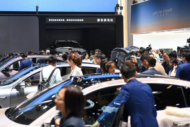 在北京中国国际展览中心顺义馆举行的2024北京车展上,东说念主们在车展现场参不雅(2024年4月25日摄)。新华社记者 鞠焕宗 摄