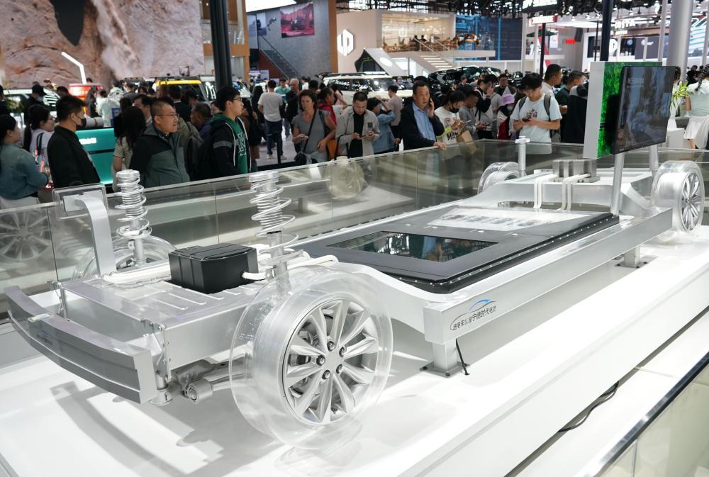 2024年4月30日,在北京车展上,不雅众在祥瑞汽车展区参不雅一款AI数字底盘。新华社记者 张晨霖 摄