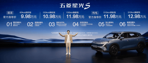 近日,五菱汽车旗下家用大空间SUV-五菱星光S厚爱上市,全系5款成立及售价信息公布。新车提供插混(PHEV)车型和纯电(EV)车型两种能源版块,官方售价9.98万元-12.98万元。
