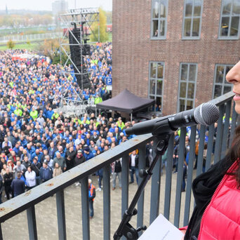 “料理层对此事魄力极为严肃。这并非集体谈判中的虚张声威。”德国全球汽车集团劳资委员会(工会)主席达尼埃拉·卡瓦洛(Daniela Cavallo)在位于沃尔夫斯堡的最大工场向职工们这么说谈,并威迫要中断谈判。