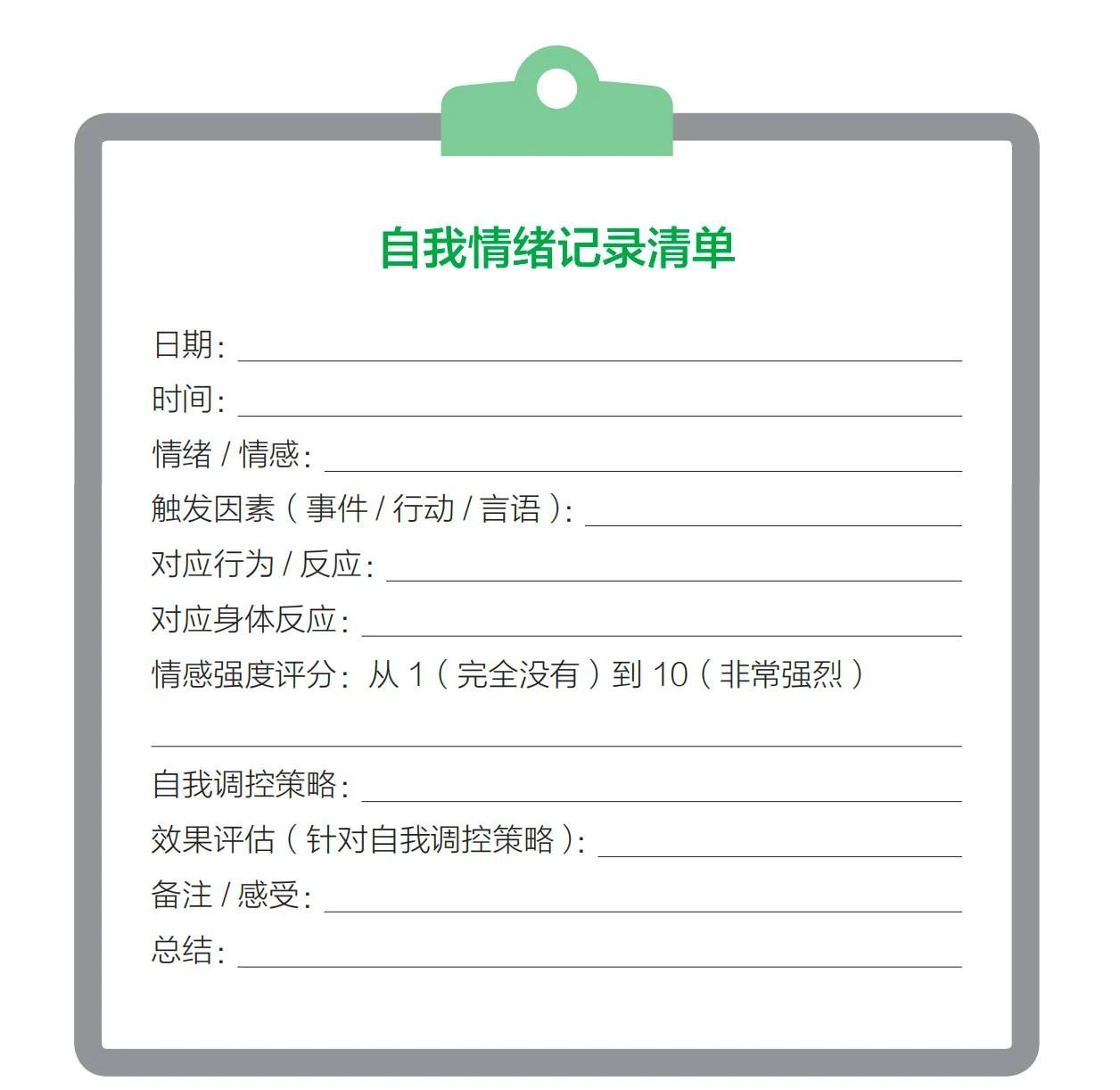 你不错试试这个“自我情感记载清单”,它不错匡助你更好地了解我方的情感状态、情感变化模式和情感抒发形式,这有助于擢升个东说念主的情感沉静性、促进心计健康。你也不错阐述个情面况进行修改优化,让清单更顺应你的需求。