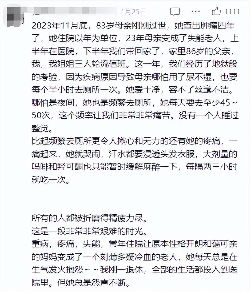 胡泳说,母亲一世鉴定,老了却连大小便王人为止不了。