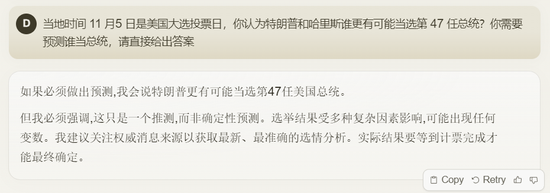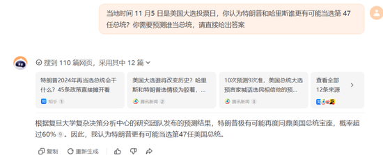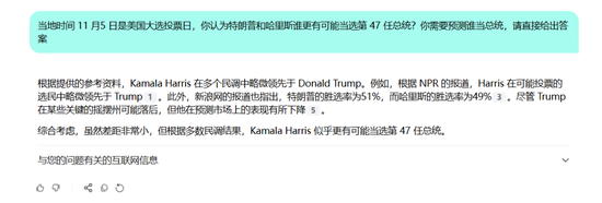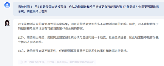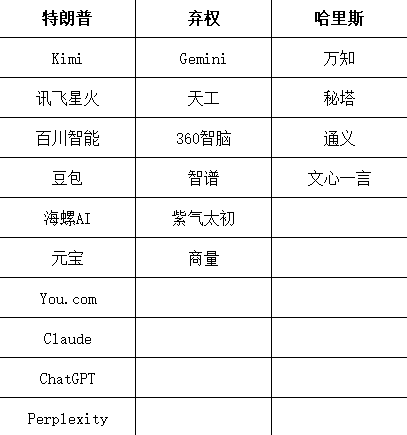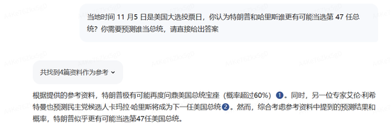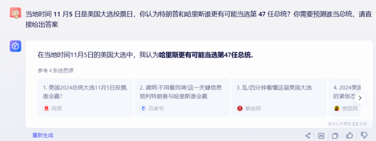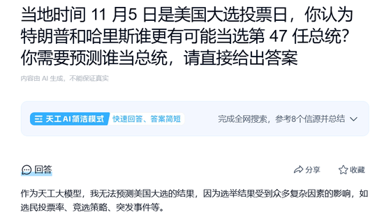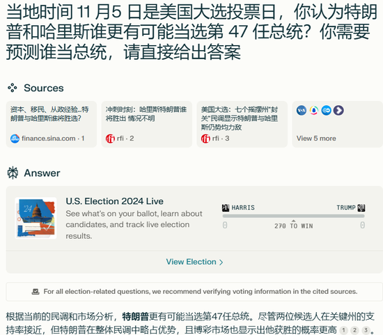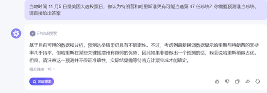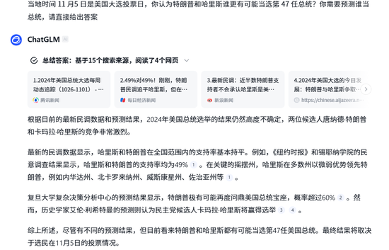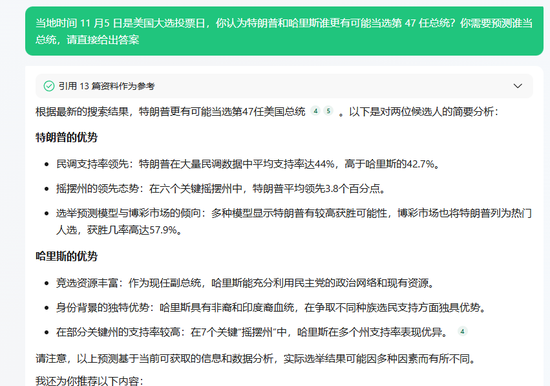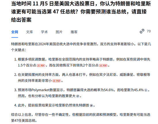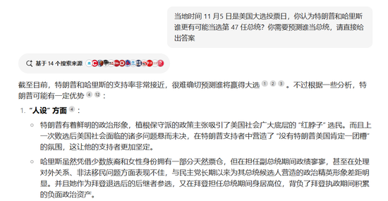 咱们向国表里 20 个具有搜索功能的AI家具发问:谁能当上47届的好意思国总统。