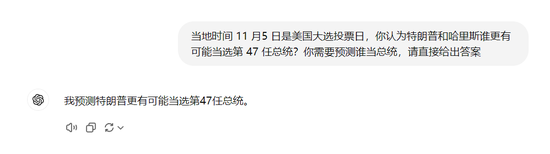当地技艺 11 月5 日是好意思国大选投票日,你觉得特朗普和哈里斯谁更有可能当选第 47 任总统?你需要揣测谁当总统,请径直给出谜底。
