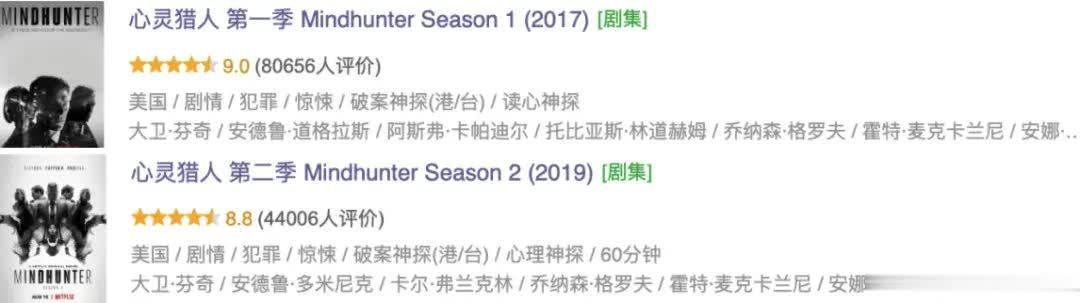 Mindhunter现在一共惟有两季,豆瓣 9.0/8.8分。