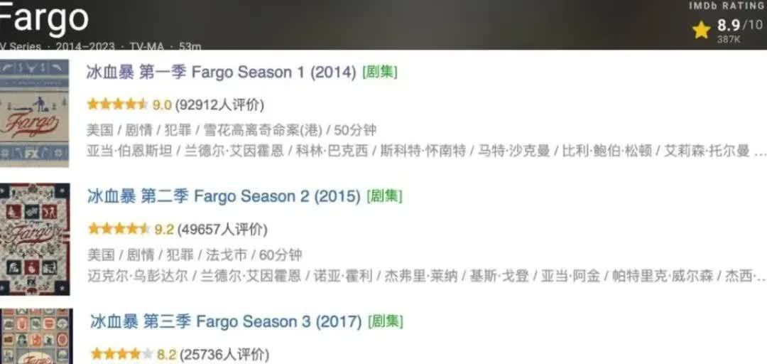 科恩伯仲经典电影改编,每一季齐是独处的积恶故事,但气质世代相承:猖獗、冷峻、玄色幽默。