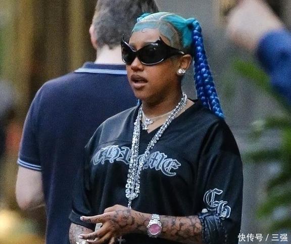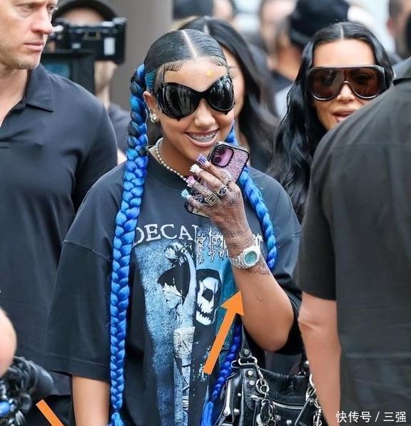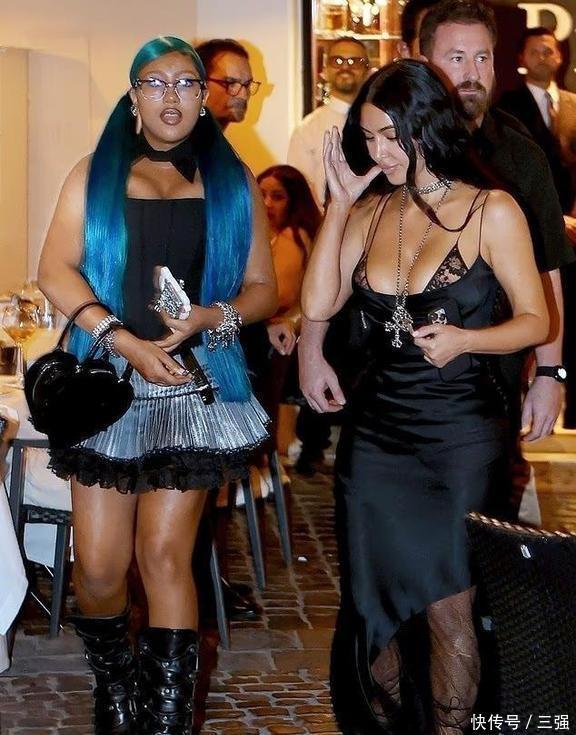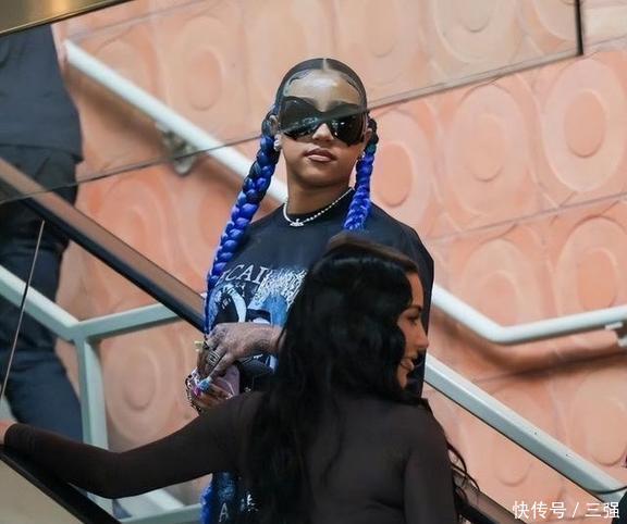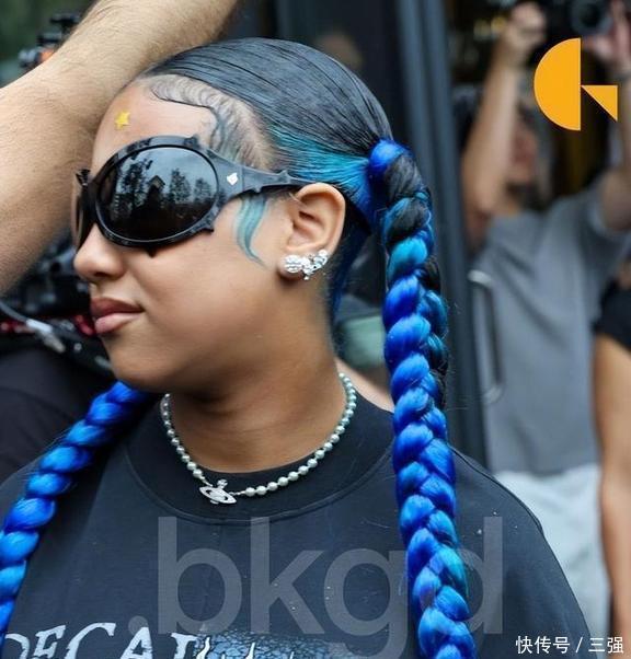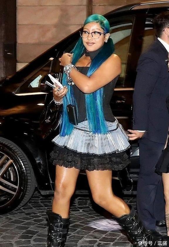 她那一头孔雀蓝的长辫子,戴上酷酷的墨镜,手上还尽是“纹身”,一站那儿,气场径直把傍边的姆妈给压下去了。