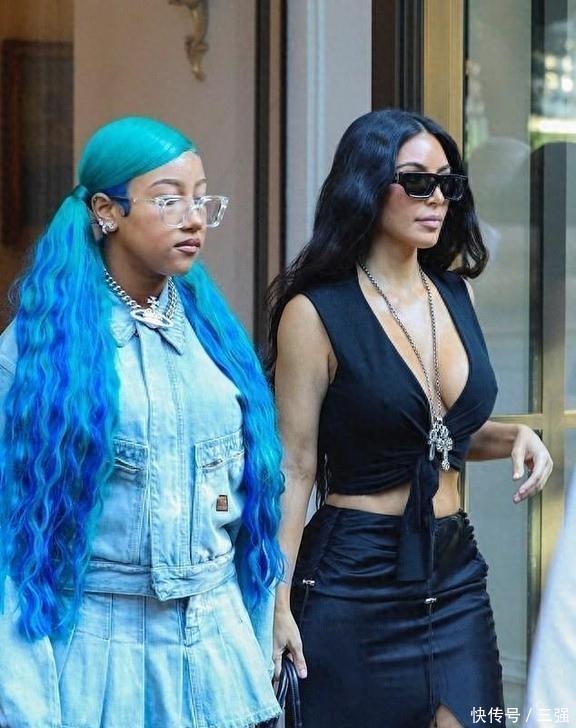 上身衣裳一件遍及的黑T恤,手上却提着一个绝顶大的巴黎世家黑包,傍边的卡戴珊两手啥皆莫得,若何看就像男儿在给姆妈提包似的。
