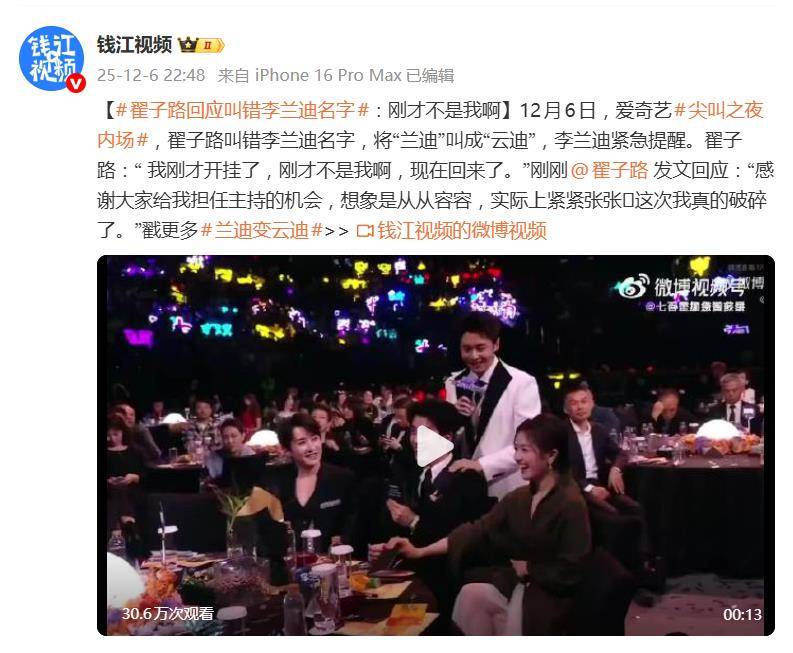 12月6日爱奇艺尖叫之夜内场,初度以“尖叫连合员”身份挑大梁的翟子路,在主抓要领误将搭档李兰迪的名字叫成了“云迪”。地点一度凝固,但李兰迪反馈速即,先是一愣,立地笑到弯腰,并幽默接梗:“那我得先练练(钢琴)了吧?”奥密将可能的冷场扭转为毛糙笑点。