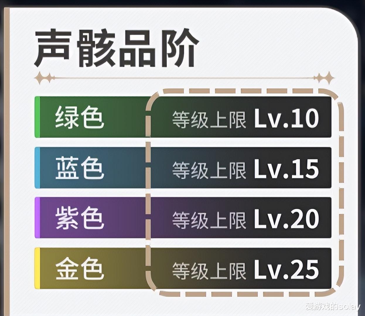 声骸系统是鸣潮养成玩法的中枢,通过装备声骸,不错为扮装提供属性加成和极端手段。声骸有四个品阶:绿色、蓝色、紫色、金色,每个品阶对应不同的等第上限。
