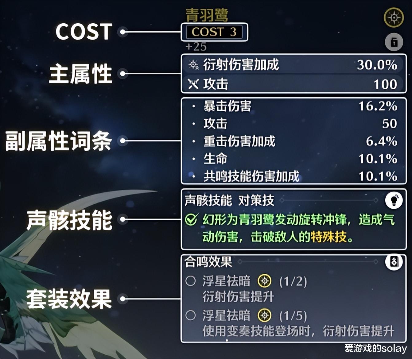 COST:当今有1、3、4三种COST,东说念主物可承载5件声骸,以为最多12COST。